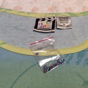 NWOT Dragonfly print 100% cotton top long sleeves pastels sequins Women Size XL