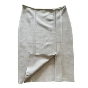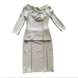 Stunning and classic Herve Leger grey bandage 2 piece set featuring a top jacket with gathering at neck and a bandage skirt