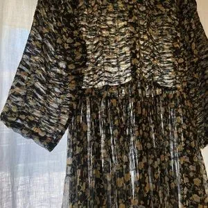 Hi neck long sleeve shear black yellow floral dress. So so stunning but sadly won’t fit me