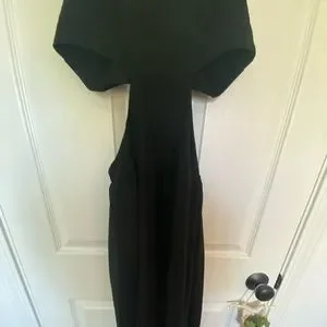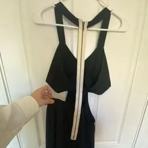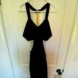 Black Cut Out Midi Dress from boutique in Laguna Beach. Very flattering and best for non-busty chests as the cutouts are form fitting. Dress is midi length. Perfect for a night out.