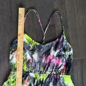 This artistic Bar III neon dress is perfect when paired with a blazer for work or dressed up with heels and leather belt for a sexy open back happy hour. Made with wrinkle free polyester, comfortable elastic waistband, machine washable on cold.