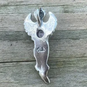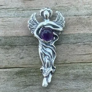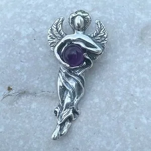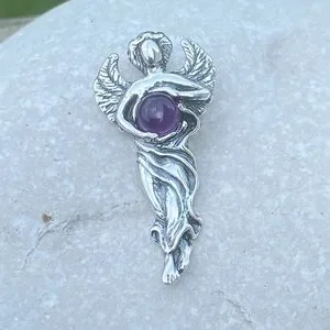 Dream Angel Pendant solid .925 Sterling Silver w/ genuine Amethyst made in USA