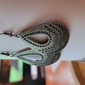 💥LAST PAIR💥Vintage Patina Teardrop Retro Floral Motif Dangle Earrings