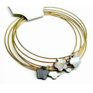 Multi-bangle bracelet with mother of pearl grey flowers