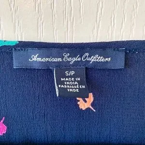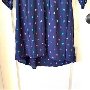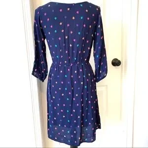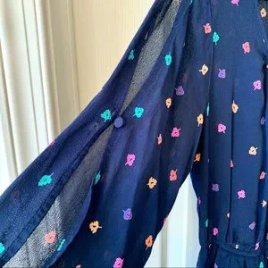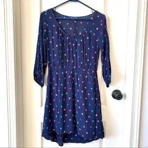Fun and flirty size SMALL dress from American Eagle Outfitters. Has long sleeves with open button detailing down the sleeves and an elastic waistline. Features a multi-colored leave pattern. Skirt has lining top is not. In excellent condition with no flaws.