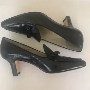 These beautiful black leather pumps from ENZO ANGIOLINI are in EXCELLENT used condition. Heel height approximately 2 1/2”.