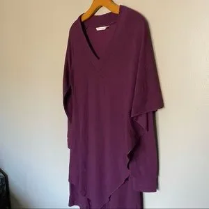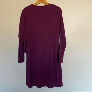So soft pretty magenta sweater dress. Cute uneven detail to front. Would look great with booties for fall or winter.