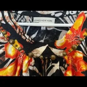 Jones of New York sport tank top with beaded neck. Fun summer tropical look. Soft knit material.