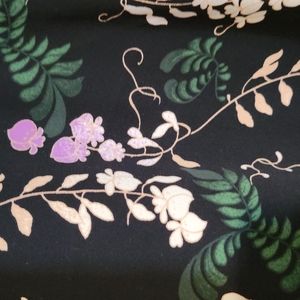 This top is gorgeous and the floral pattern is beautiful. I ended up not wearing it because I am always cold and the sleeves have a two layer bell design that does not work under a cardigan that does not have similar sleeves. It is a thick fabric and really lovely.