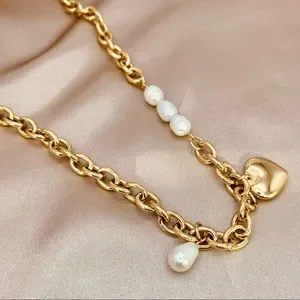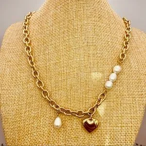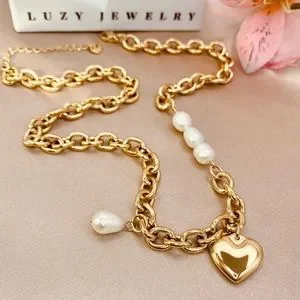 About this gorgeous necklace: Curb link chain, heart charm and pearls are big now! This stunning piece does a triple-take of chic and elegance from Luzy Jewelry Timeless Pearl Collection.