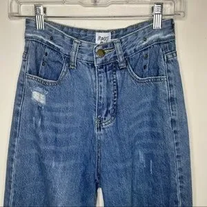 PRINCESS POLLY Balloon Leg Distressed Denim Size 2 Jeans