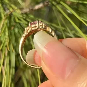 Delicate Vintage 14KT Yellow Gold Pink Topaz and Diamond Ring