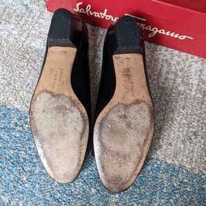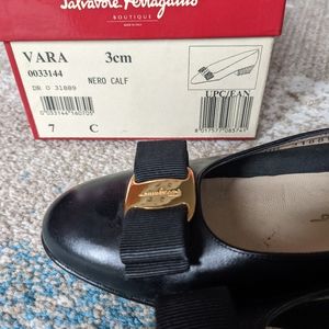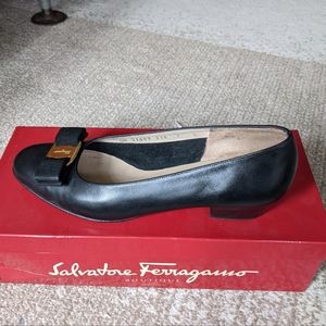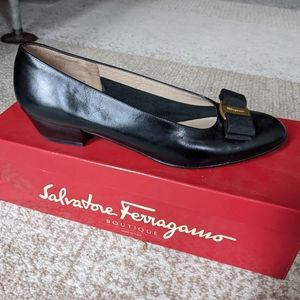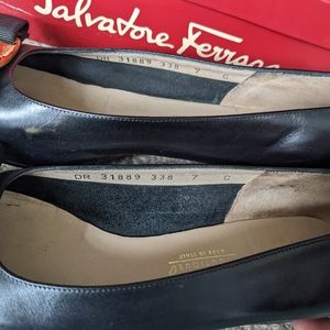 Genuine Ferragamo pump in black leather in very good condition. no scuffs on the hardware or on the black leather. Interior has some signs of wear. It has been newly reheeled ready for their next owner! Comes with the box of course.