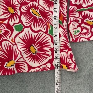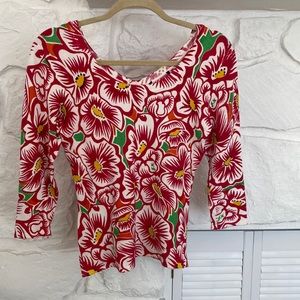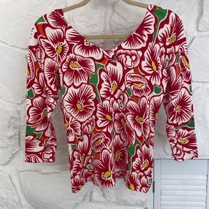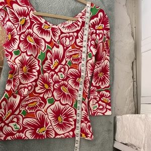 Hot Pink white yellow black green floral knit top v neck and scoop back