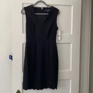 NWT black French connection dress. Size 6, fits TTS. Scallop detail on neckline and bottom. Great for work!