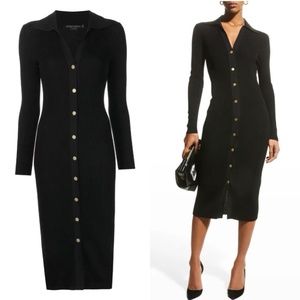 Alice + olivia Alcina ribbed wool blend button down polo midi dress