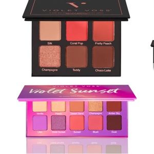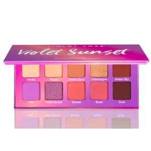 •Violet Sunset Palette. A color story inspired by the magical colors of the sunset, your eyes are sure to be the main attraction. It provides iconic everyday warm neutrals and complimentary pops of colors to achieve all the looks you desire and more. Experience Violet Voss’ addicting formulas in the perfect mix of mattes, shimmers and metallics. Always pigmented and extremely blendable.
