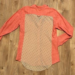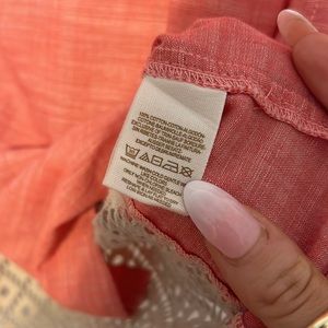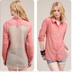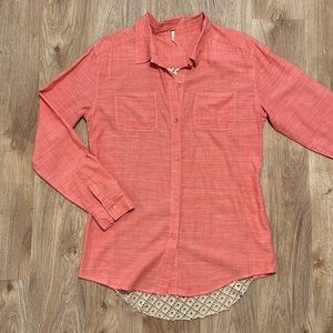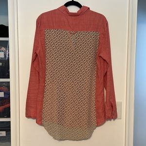 Free People Slubby Road Trip Lace Crochet Back Button Down Shirt