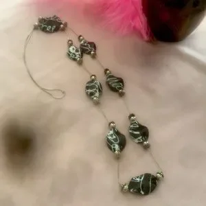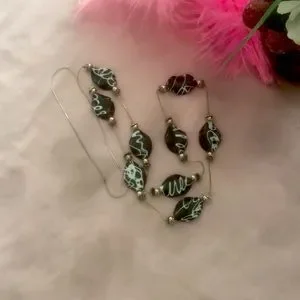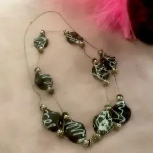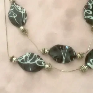 Black and white variation necklace with silver chain. 46” long