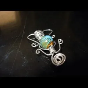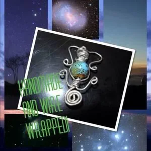 Brand new Handmade by me silver wire wrapped pendant with a teal and brown bead in center! Would look great on a silver chain or a cord!💙