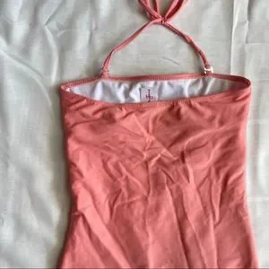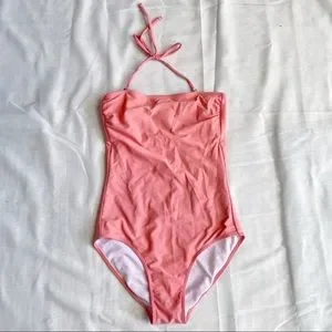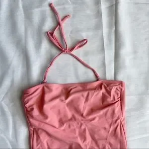 Kortni Jeane One Piece Swimsuit Halter Ruched Strapless Swim XS Pink Tie Back