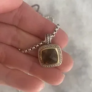 Petite Albion Pendant necklace with diamonds and brown stone + 18k gold. Faceted brown citron, pave diamonds, pendant 11 x 11 mm, chain, lobster clasp
