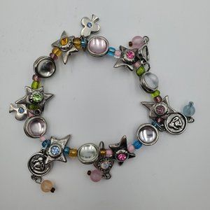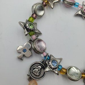 Silver Women's Stretch Bracelet Rhinestones Spades and Hearts Charm