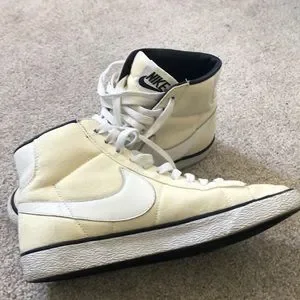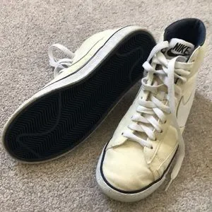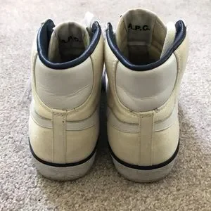 2014 Nike x A.P. C. Mid Blazer Sneakers in vintage off-white. Perfect for you or the street wear fanatic in your life! Def used but newly cleaned and the soles are spotless.