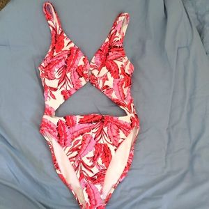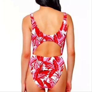 Jessica Simpson Printed Paradiso Palm O-Ring Cut-Out One-Piece Swimsuit