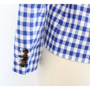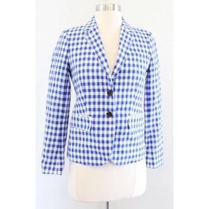 J Crew Factory Blue White Gingham Plaid Linen Blend Schoolboy Blazer Jacket 0P