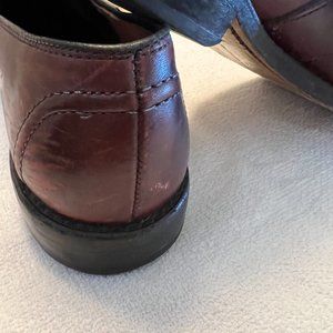 This is an Allen Edmonds Randolph 9.5 D. With a little TLC, these will last many years. Reddish-brown? is that burgundy? Nice, you'll be comfortable.