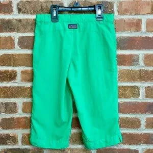 Awesome pair of girls Bermuda pants/shorts, by high end outdoor athletic wear brand, Patagonia, in a girl’s size Small 8. Beautiful vibrant shade of green. Pants have a zipper and button fly closure and two front side pockets. Inner waistband is adjustable, allowing these to fit for longer. These pants are in great pre owned condition with one tiny hole, which is clearly depicted in the fifth and sixth photos, that is almost invisible and very difficult to see. Doesn’t detract from the look or quality of pants whatsoever. Super cute and stylish pants by a fantastic high end company! Seller is smoke/pet free. Pants have been sanitized with clothing steamer. Fast shipping. Cross posted, so don’t wait!
