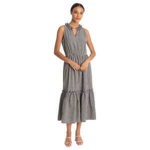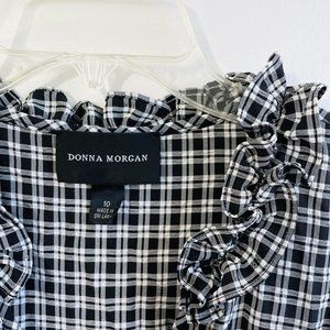 Donna Morgan Midi Dress Size 10 Tiered Dress Plaid Black White Sleeveless New
