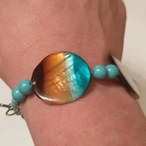 Brown, peach and aqua hand made bracelet with silver toggle clasp!