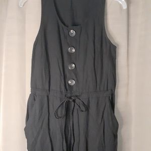 Super Cute Annabelle Linen Black 4 Button Jumpsuit With Drawstring