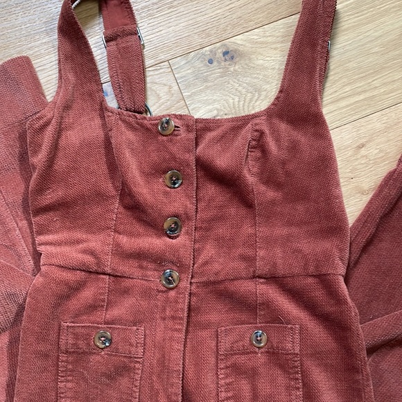 Never Worn but for Photos 📸Oh so cute Rusty Red Urban Outfitters festival Jumpsuit. I absolutely love this piece but the corset style top is just a tiny to big for me. Zipper front and button closure has enough coverage that you don’t have to wear a top but can be paired with a crop or a boho bralette! So soft and comfortable, ready for festival season. Two tiny front pockets for stash cash and lip balm. Pair with some round sunglasses and a daisy in your hair and you have flashed back to 1972. The bell style cuffs are perfect for sandals or clogs.