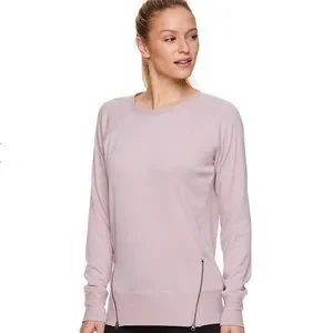 Complete your yoga look in this super comfortable sweatshirt by Gaiam. Size M. Color is Violet Ice. Side zippers and stylish details.