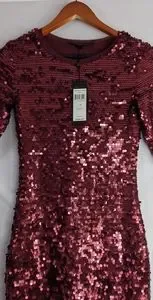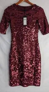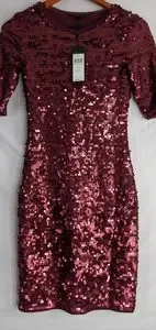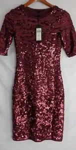NWT, Bcbgmaxazria BCBG Marta Sequin Dress Color Portcombo, Size XS. In Mint Condition Never Used. Measurement Approx. Length: 35", Bust: 28", Sleeve: 11.5".
