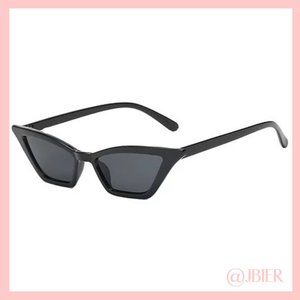 The Jessica Cat-Eye Sunglasses feature black frames that point upward on the side, tinted lenses, small fit, narrow frame, long diameter, and are dust-proof.