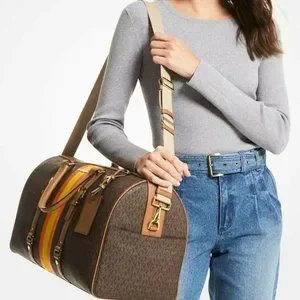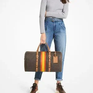 MICHAEL KORS BEDFORD TRAVEL EXTRA-LARGE LOGO STRIPE WEEKENDER BAG