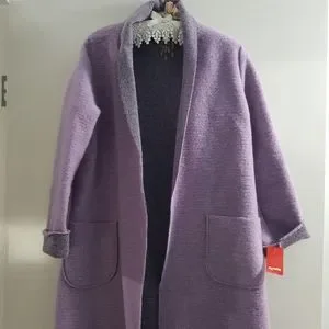 60% Wool & 40% Polyester, Italian made coat. Very light to wear. TKMaxx brand. Bought last winter but hasn't been worn.Size M 10-12. BNWT