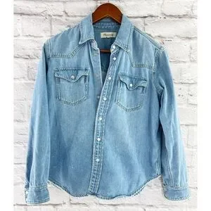 Madewell Oversized Western Snap Button Up Shirt Blue XXS