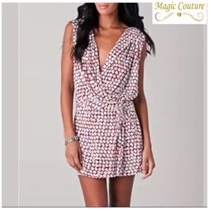 Diane Von Furstenberg Denisha romper size small. Adorable romper with hood! Has two slip pockets. Long open sleeves on sides. Wrap top that buttons on one side and has a detachable tie waist belt. Red white and blue polka dot pattern. Condition is excellent, no flaws! Make an offer! ♥️🤍💙