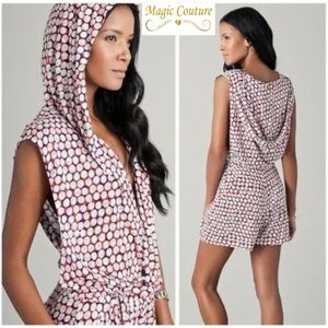 ❌SOLD❌Diane Von Furstenberg Denisha Spotted Print Hooded Romper🤍💙