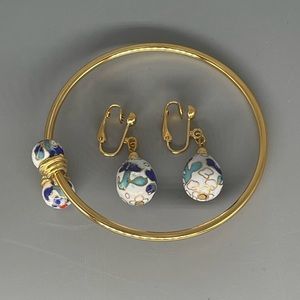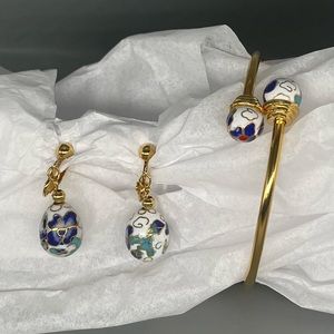 !!SOLD!! Vintage Avon White Blue Cloisonné Easter Egg Clip Earrings Bracelet