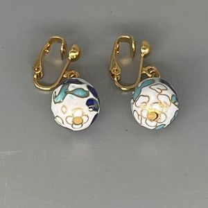 Vintage 1994 Avon Genuine White with Blue Cloisonné Easter Egg Clip Earrings and Bracelet Set