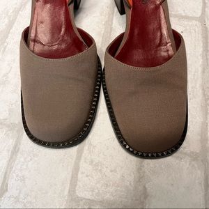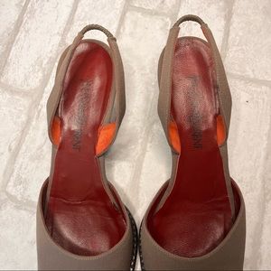 Yves Saint Laurent Vintage Tan Canvas Heel Slingback Square toed size 7.5