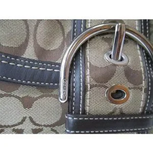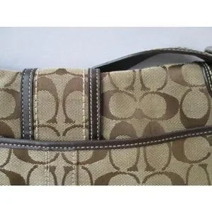 Coach Logo Leather Trim Flap Shoulder Tan Canvas Hobo Bag
