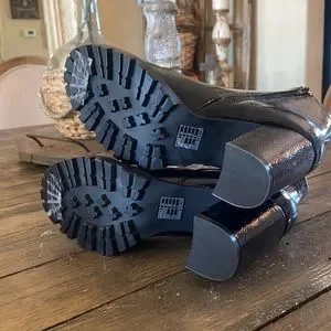 Brand New Forever 21 Black Patent Leather Chunky Combat Booties- Size 10