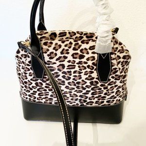 NWT FRANCES VALENTINE ABBY TOTE PRINTED HAIRCALF SNOW LEOPARD